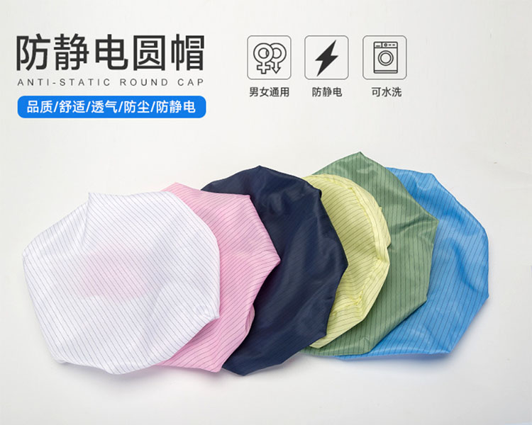 防靜電圓帽是由專業(yè)的防靜電面料制作,采用滌綸長(zhǎng)絲與高性能導(dǎo)電纖維編織而成,具有高效、永久的防靜電、防塵性能,能有效釋放人體靜電荷,從而滿足高級(jí)別無(wú)塵環(huán)境的要求??膳c防靜電無(wú)塵服適配,適用于潔凈作業(yè)車間。