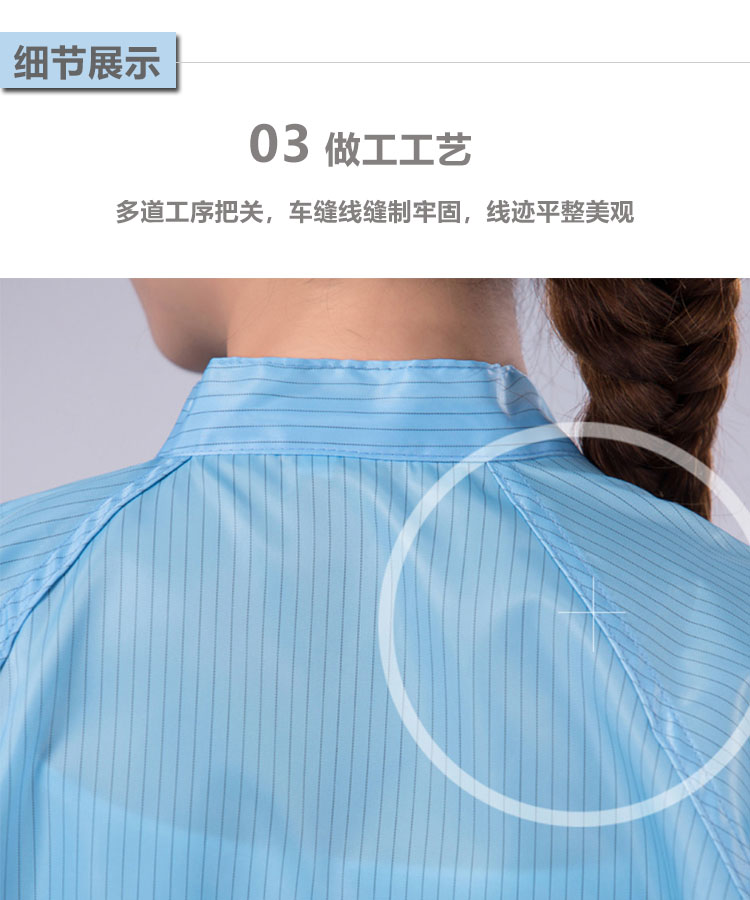 防靜電無(wú)塵分體服采用的導(dǎo)電綢面料除了具有良好的防靜電功能外,其面料同時(shí)還具有本身不發(fā)塵、不沾塵、阻隔性好,高密度等功能,一般應(yīng)用于實(shí)驗(yàn)室、無(wú)塵凈化車間里。根據(jù)潔凈室的要求,可以選擇0.5CM條紋、0.5CM網(wǎng)格、0.25CM網(wǎng)格等導(dǎo)電綢面料的無(wú)塵服。