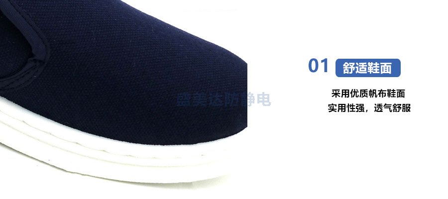 3、鞋面采用帆布面料,舒適透氣,防塵效果好,易于清洗;
