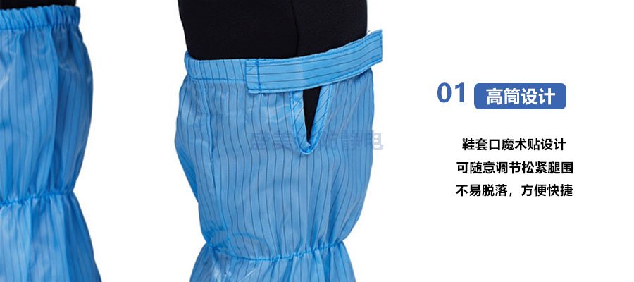 防靜電高筒靴鞋套面料為5mm條紋或者網(wǎng)格防靜電布料制作而成,布料顏色多樣。防靜電鞋套有更好的防靜電、防塵效果,防靜電指標達到10的6次方到10的9次方,摩擦電壓可控制在100V以內(nèi),可防止人體靜電對ESD敏感器件的的損壞和防止微塵從鞋底部位逸出污染無塵車間,適用于微電子、光電、半導(dǎo)體、醫(yī)藥生物、食品、石油化工等行業(yè)對靜電微塵比較敏感和對潔凈度要求較高的行業(yè)。