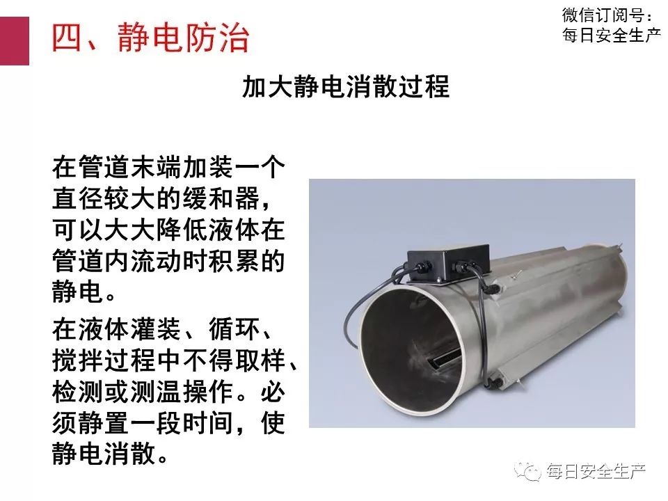 粉體、液體、氣體在運輸過程中由于摩擦會產(chǎn)生靜電。因此,要采取限制流速、減少管道的彎曲。增大直徑、避免振動等措施。