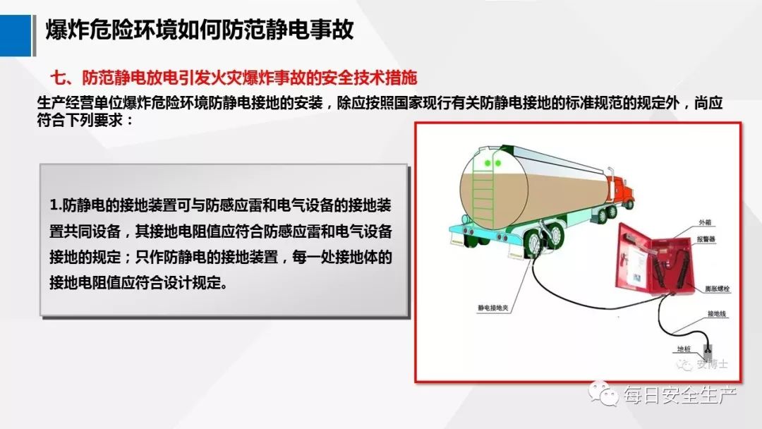 9.3.5 汽車罐車、鐵路罐車和裝卸棧臺應設靜電專用接地線。