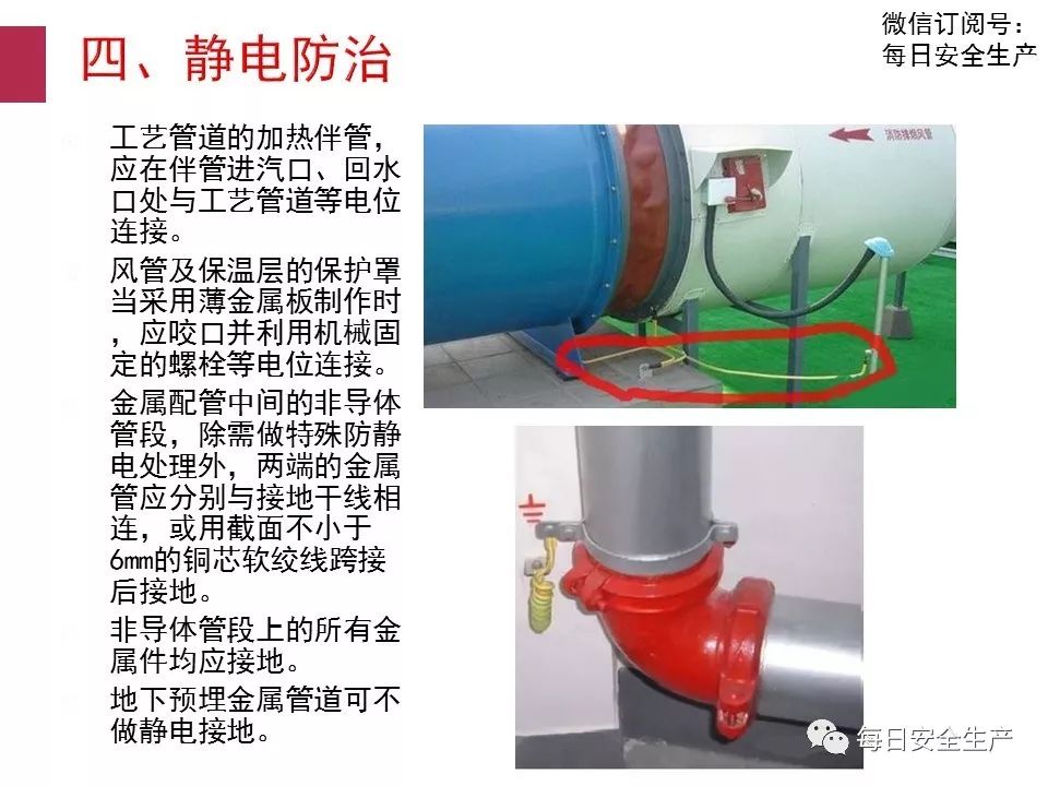 ⑤非金屬管道,如帆布、橡膠、石棉、水泥、塑料等管道比金屬管道更容易產(chǎn)生靜電。