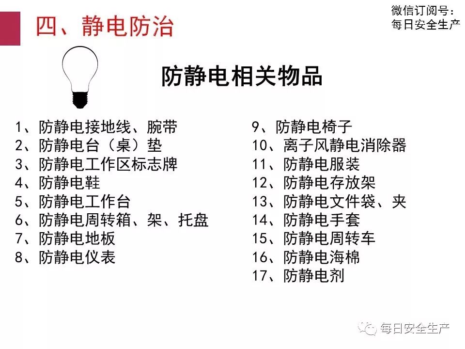 為防止靜電積累所引起的人身電擊、火災和爆炸、電子器件失效和損壞,以及對生產(chǎn)的不良影響而采取的防范措施。其防范原則主要是抑制靜電的產(chǎn)生,加速靜電的泄漏,進行靜電中和等。