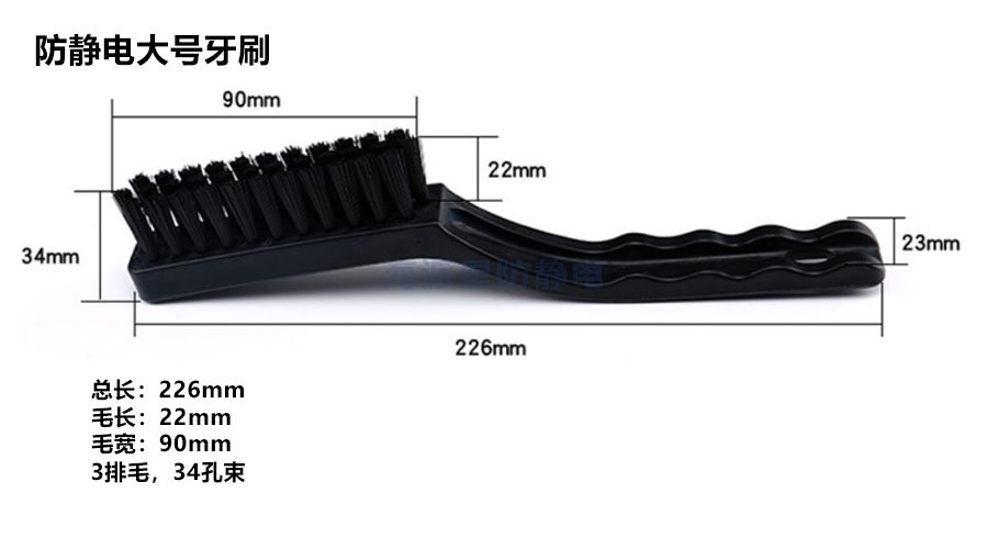 防靜電毛刷也稱防靜電刷,其手柄部分由高強(qiáng)度PP塑料加導(dǎo)電粉制成,刷毛部分由PA尼龍加導(dǎo)電粉制成,具有耐磨、耐高溫、不粘塵、韌性好、無異味等極佳性能,主要用于清潔各種元器件,掃除PCB線路板等器件的表面污物,適合于清潔、清洗、包裝區(qū)等使用。防靜電毛刷按外形大致可分為:防靜電牙刷(又稱曲柄型)、防靜電U型刷、防靜電直柄刷、防靜電排刷、防靜電圓柄刷。