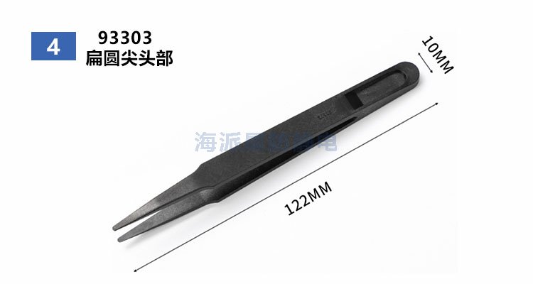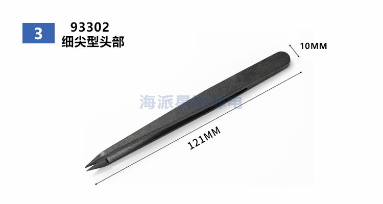 防靜電塑料鑷子,又叫半導(dǎo)體鑷子、導(dǎo)靜電鑷子,采用PPS塑料和碳纖維加工而成。產(chǎn)品不析出黑色粉塵,避免傳統(tǒng)防靜電塑料含有炭黑而污染產(chǎn)品,具有良好的硬度、彈性、耐酸堿、耐高溫,可有效泄放靜電電荷,使用方便、靈活,適用于半導(dǎo)體,IC等精密電子元件生產(chǎn)使用。
