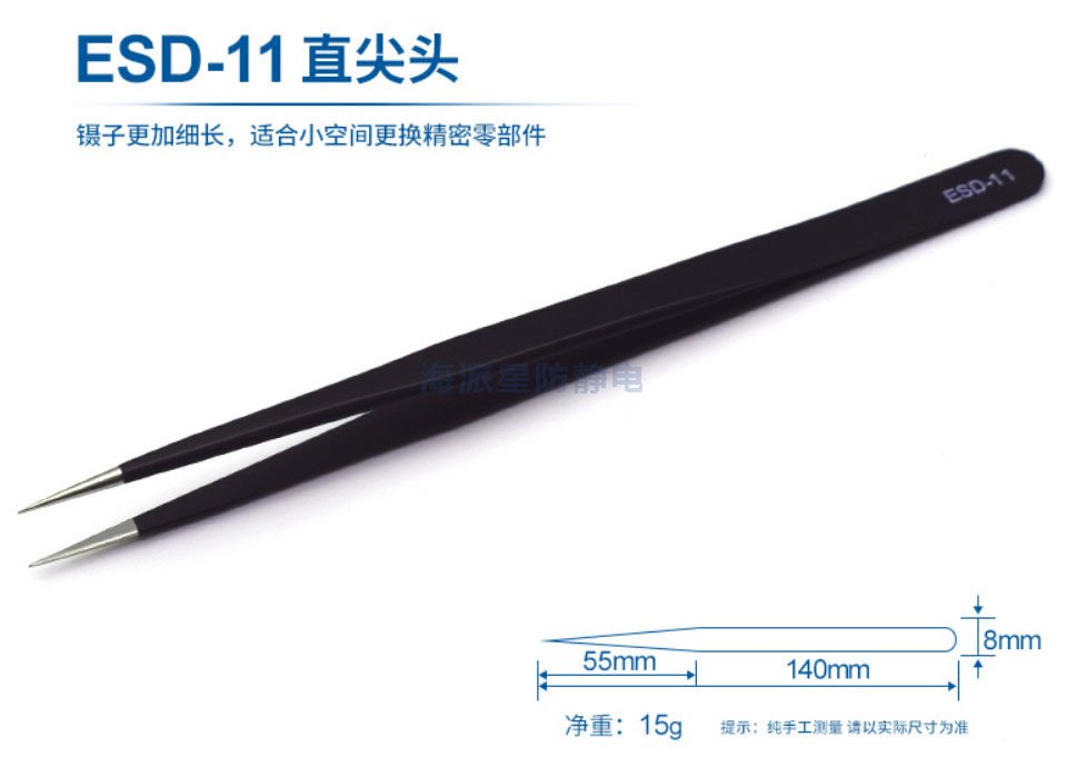 ESD-11 鑷子更加細長,適用于小空間更換精密零部件