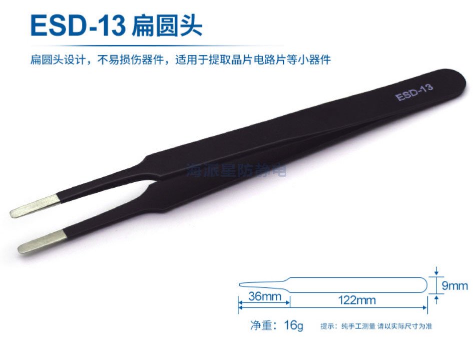 ESD-13 扁圓頭設計,不易損傷器件,適用于提取晶片、電路片等小器件