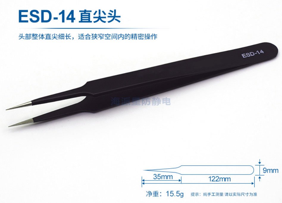 ESD-14 頭部整體直尖細長,適合狹窄空間內的精密操作
