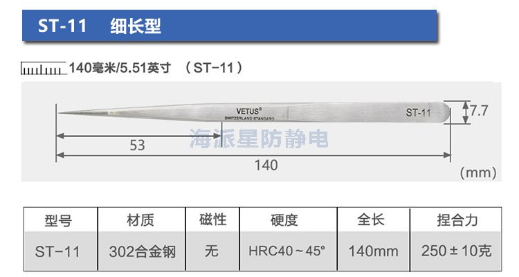 ST-11 鑷子更加細(xì)長,適合在狹小空間更換精密元件
