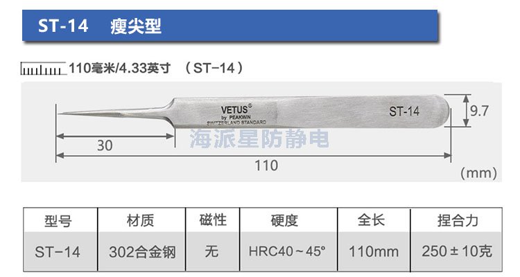 ST-14 頭部整體直尖細(xì)長,適合狹窄空間內(nèi)的精密操作