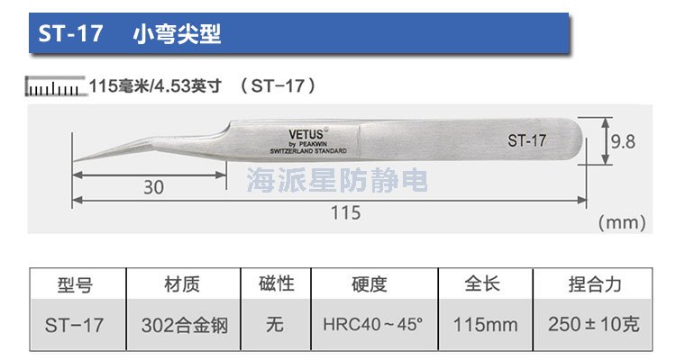 VETUS/維特斯品牌鑷子,產(chǎn)品系列有:電子鑷子系列、JP系列、SA系列、ST系列、ESD防靜電系列、SED可換頭防靜電系列、MCS美容鑷子系列共100多個(gè)品種,產(chǎn)品具有超精細(xì)、高精密、抗磁、抗酸、超硬又有彈性、超耐用等特點(diǎn)。產(chǎn)品銷往三十多個(gè)國家和地區(qū),成為全球很有知名度的國際品牌產(chǎn)品。